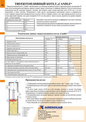 Технические данные твердотопливного котла „Candle"
