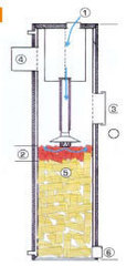 Твердотопливный котел „Candle" предназначен для обогрева индивидуальных и промышленных помещений. В топке котла цилиндрической формы хорошо сгорают дрова, опилочные и торфяные брикеты. В котле использован уникальный способ сжигания твердого топлива, при котором горит только верхний слой (10-20 см), а не всезагруженное в топку топливо. Подаваемый в топку воздух подогревается выходящим дымом и направляется в очаг горения посредством распределителя воздуха. После сгорания одного слоя дров распределитель воздуха (стимулирующий горение слоя дров толщиной 10-20 см) опускается ниже и всегда держится на уровне горящих дров - в очаге горения.