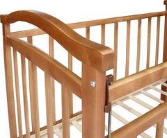 Впоследствии боковую стенку можно снять совсем, таким образом кроватка превратится в очень уютный диванчик.